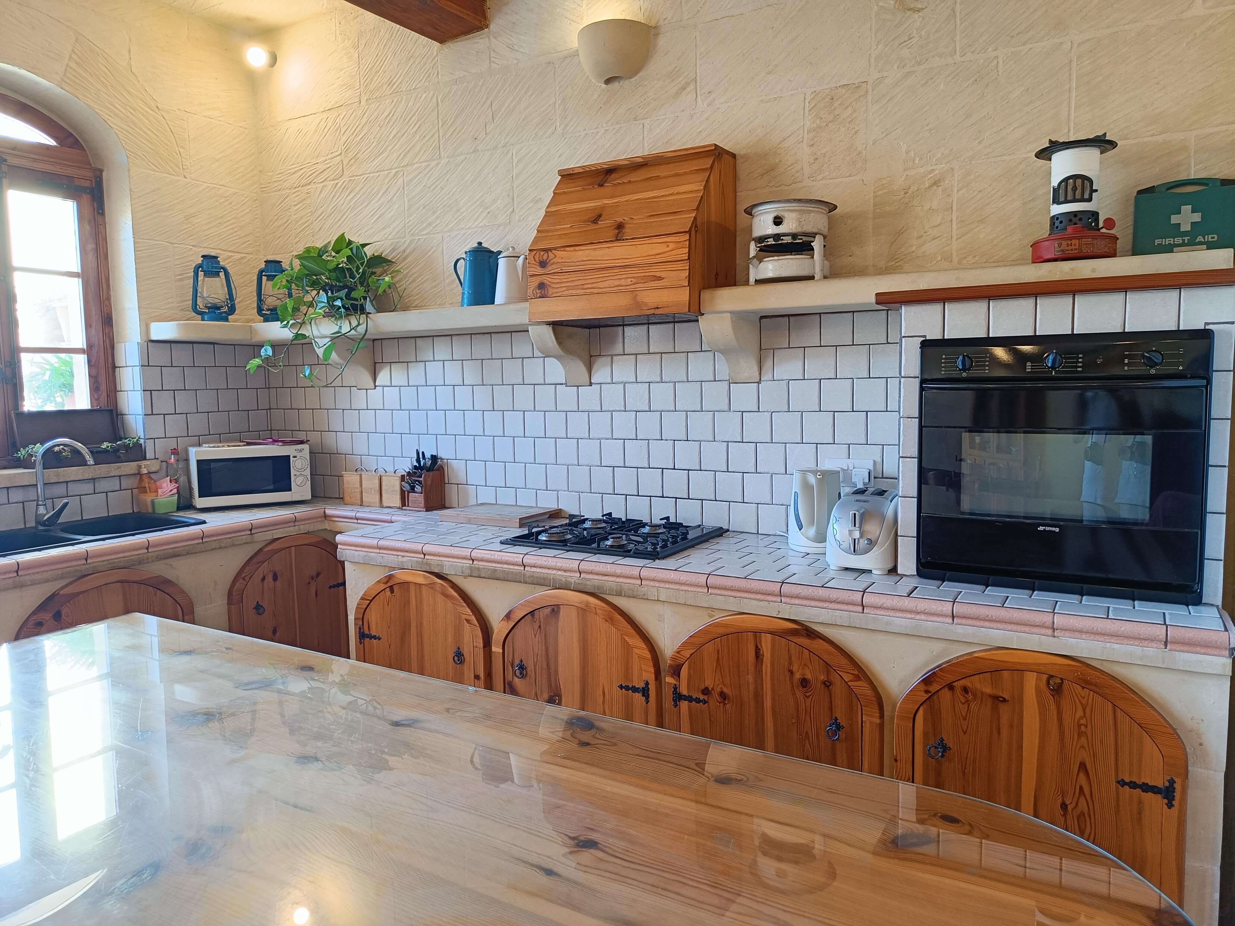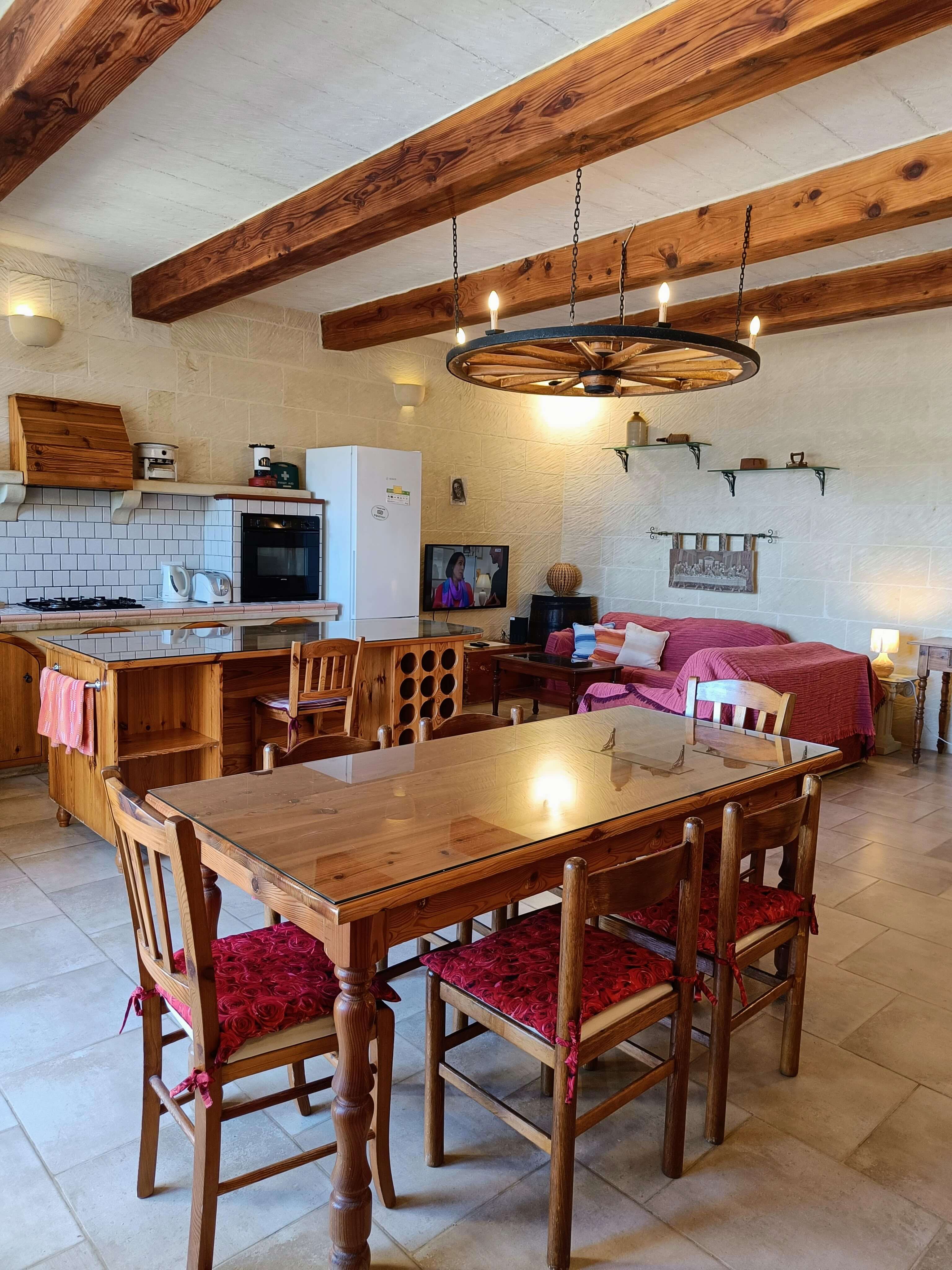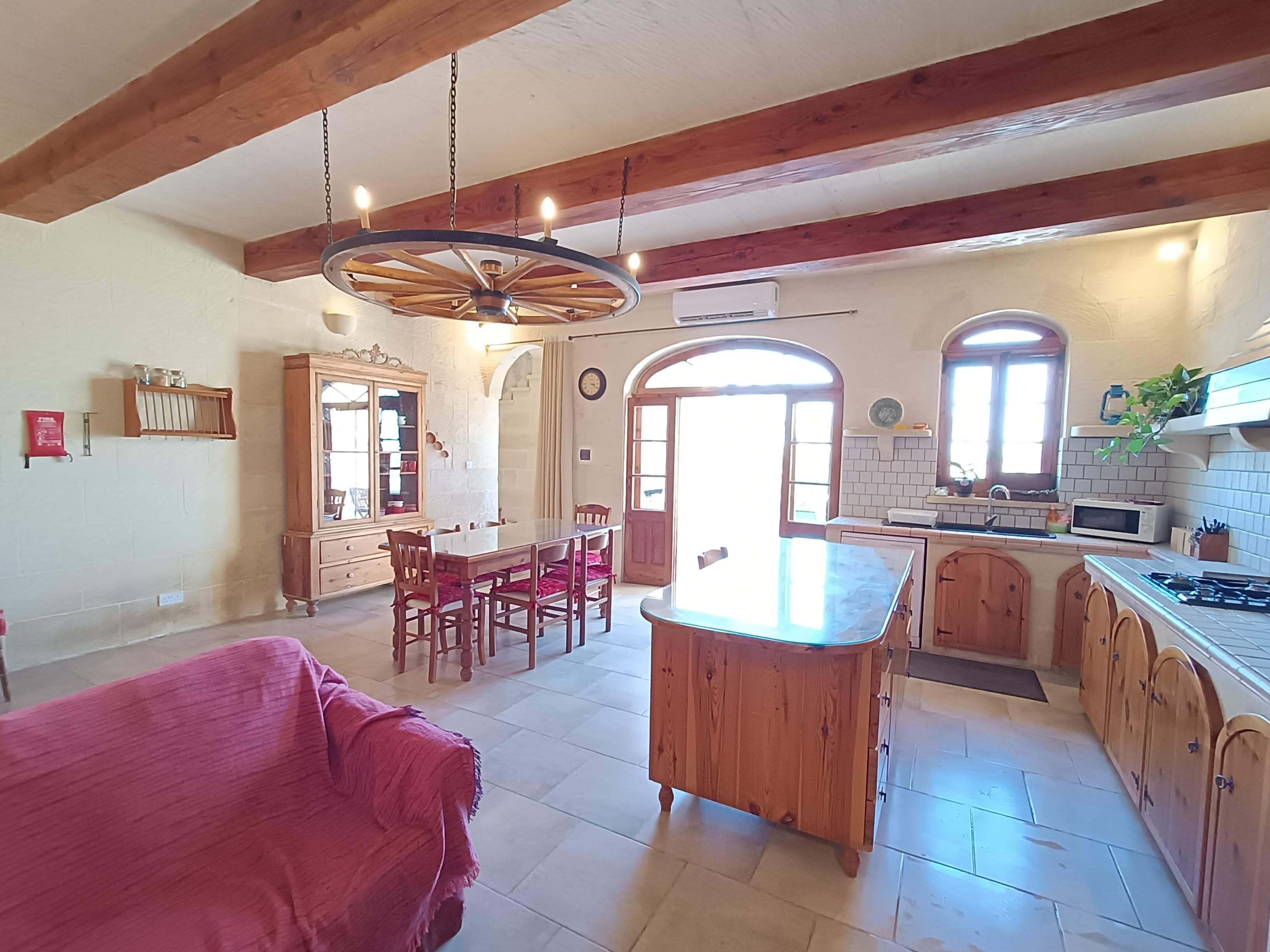 At the first floor, there is a small lobby with a separate shower, WC and a door leading to a terrace overlooking the pool area. One also finds a large combined kitchen, dining and sitting area. The kitchen has built in equipped with all the necessities including built in hob, oven, dishwasher, microwave and T.V.