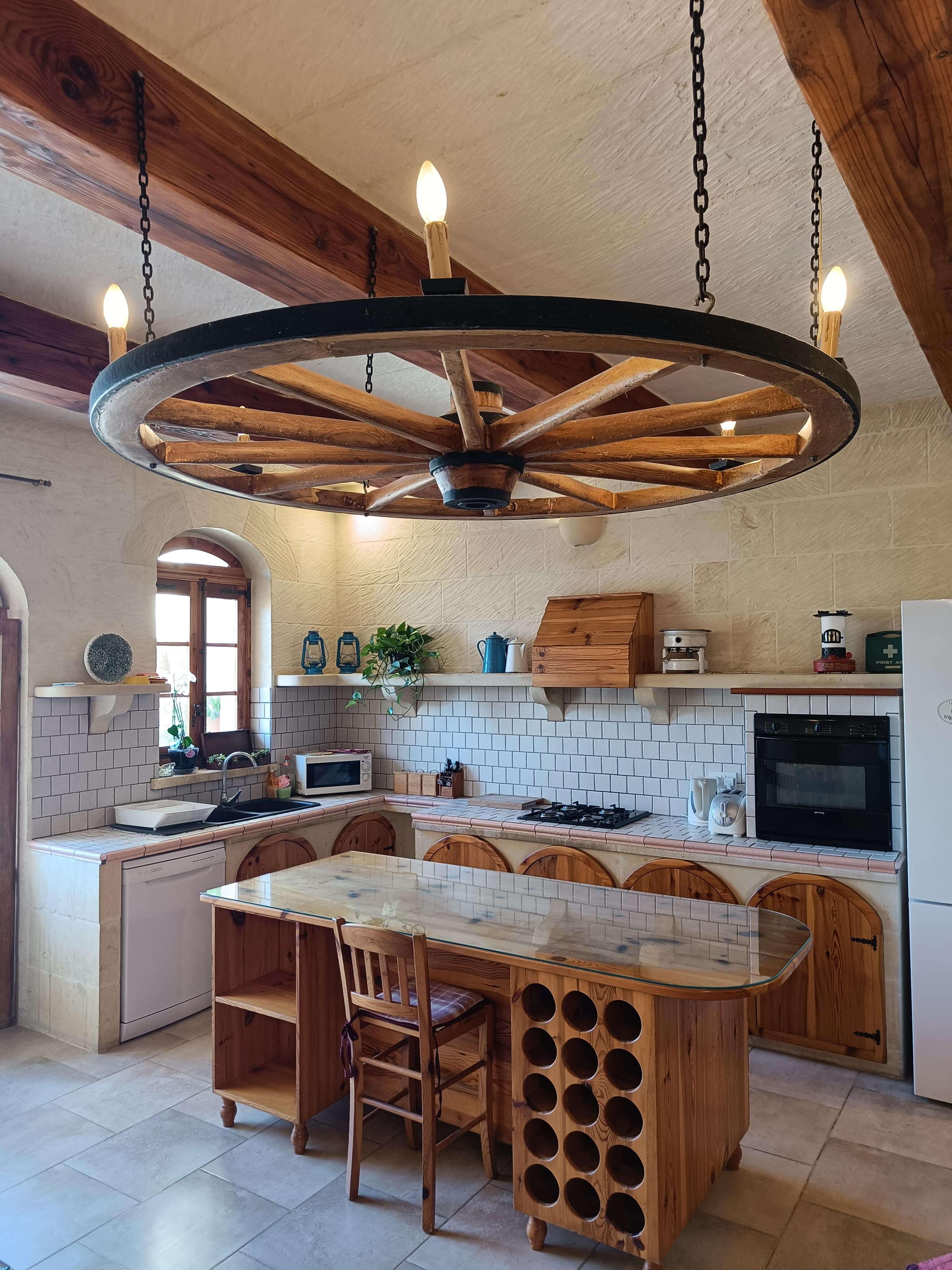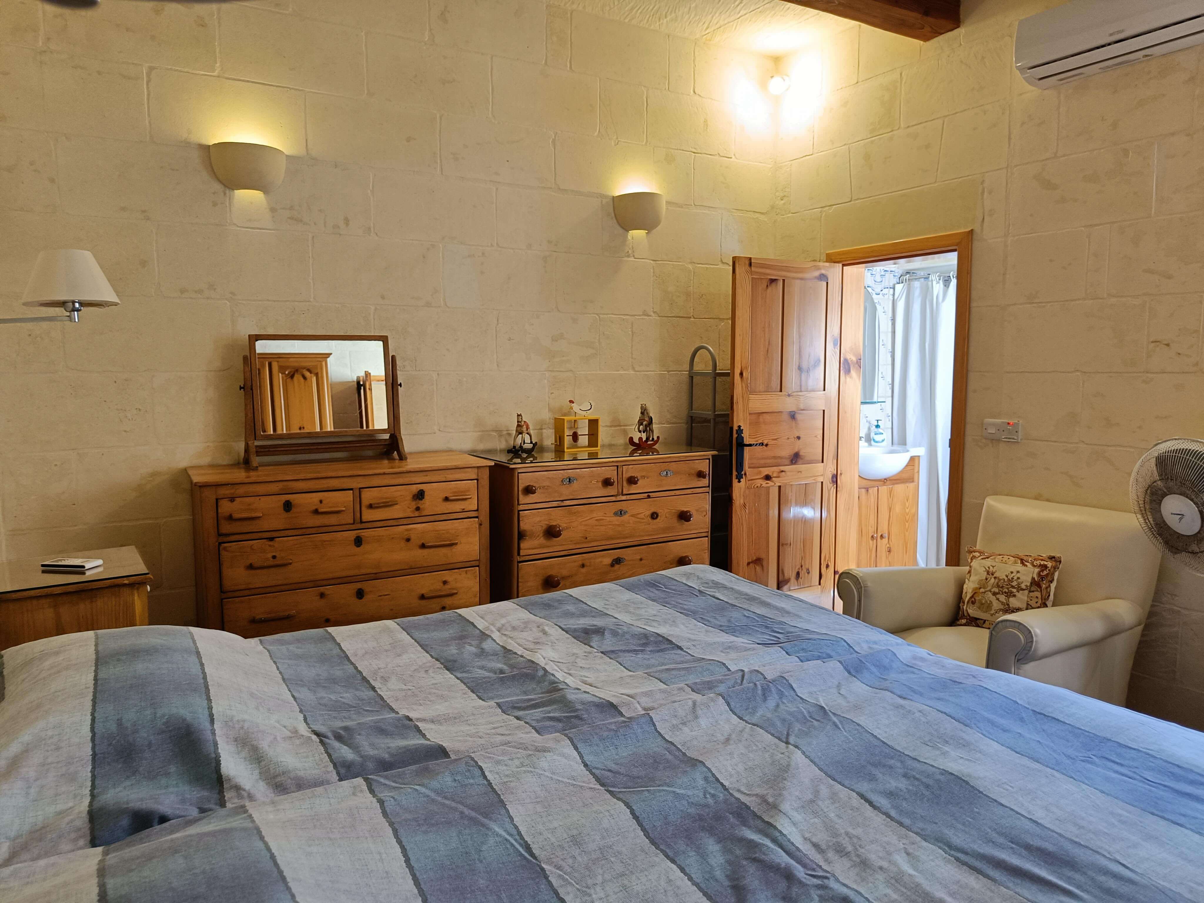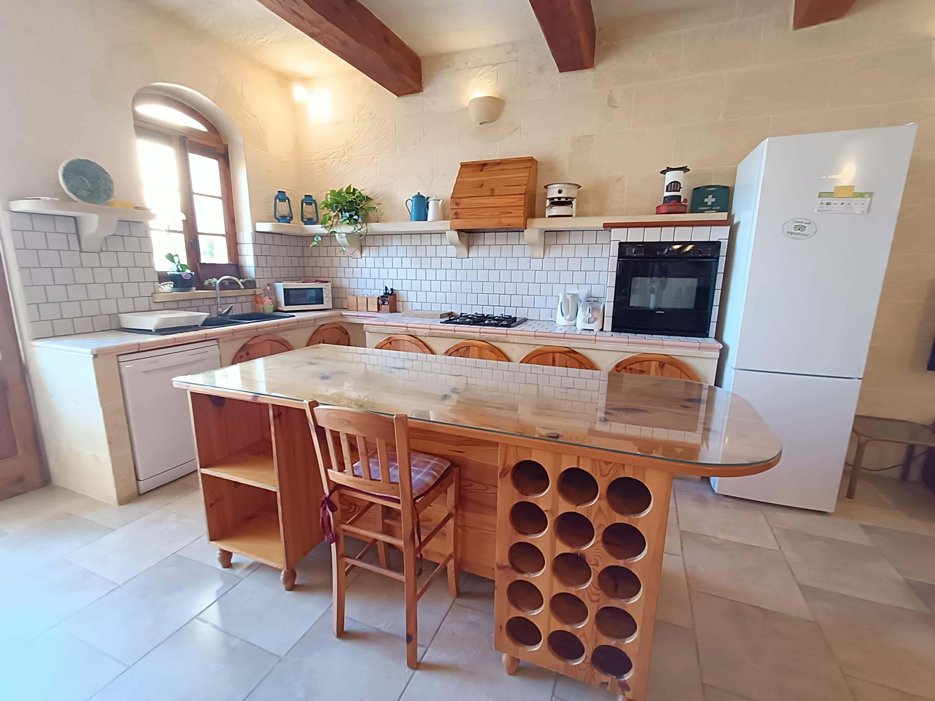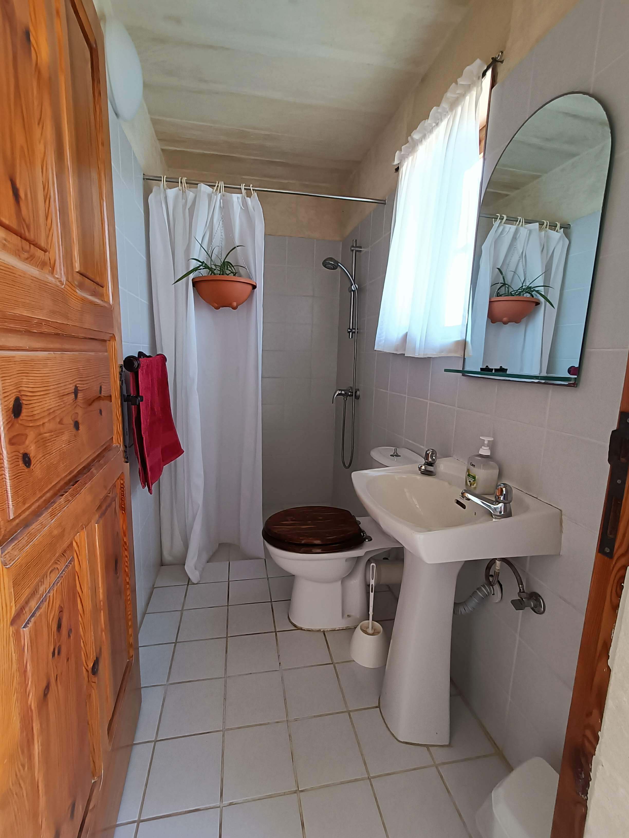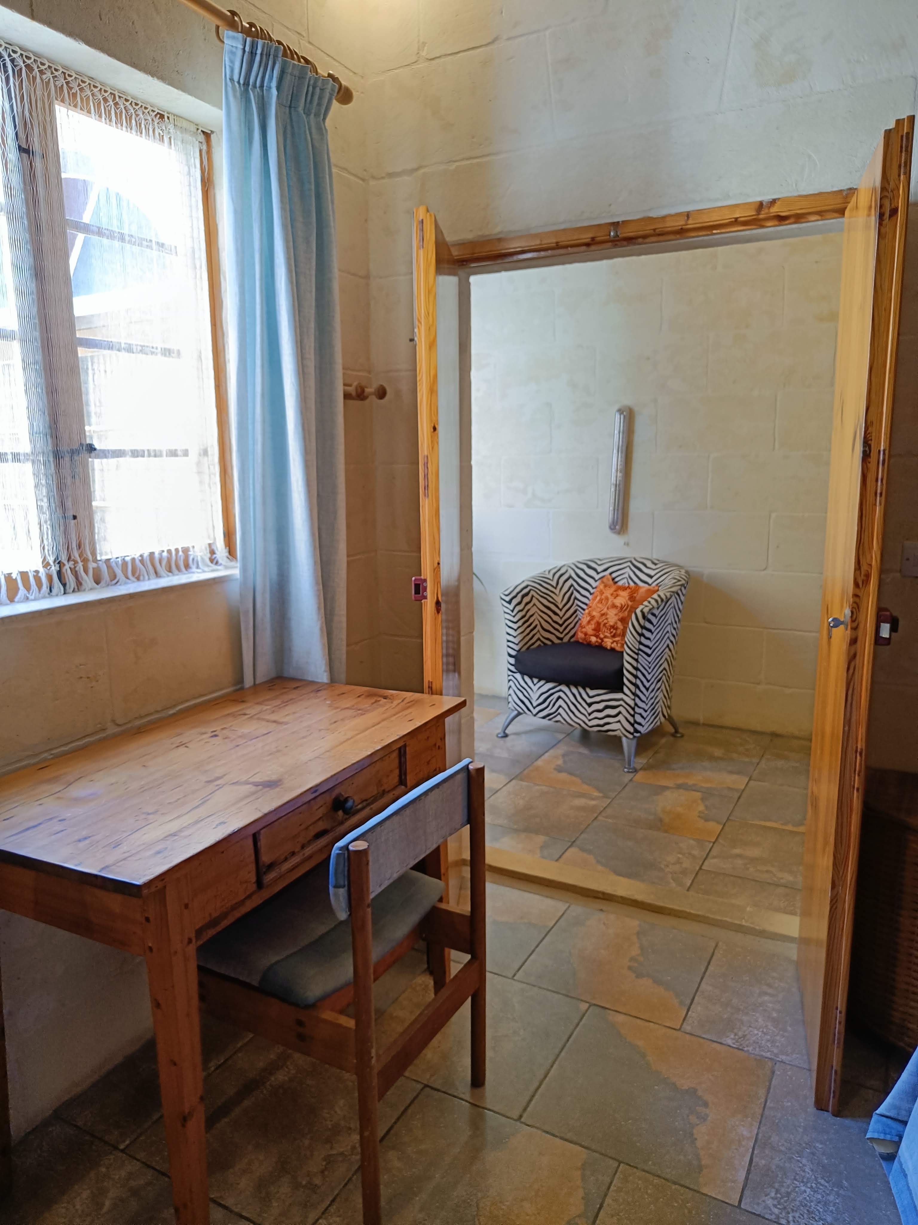 At ground floor level, one finds a twin bedroom with en-suite (shower, WC and washbasin). There is also a small lobby with seating and separate shower, WC and washbasin. From the lobby, one can access a large combined kitchen, dining and sitting room. The kitchen is equipped with all that you require, including a built in hob, oven, microwave, combined fridge-freezer, dishwasher and T.V. The kitchen leads to a terrace equipped with a BBQ and pool shower, W.C and a washbasin. Outside one finds a large pool area with a private swimming pool, deck chairs and other outdoor furniture.