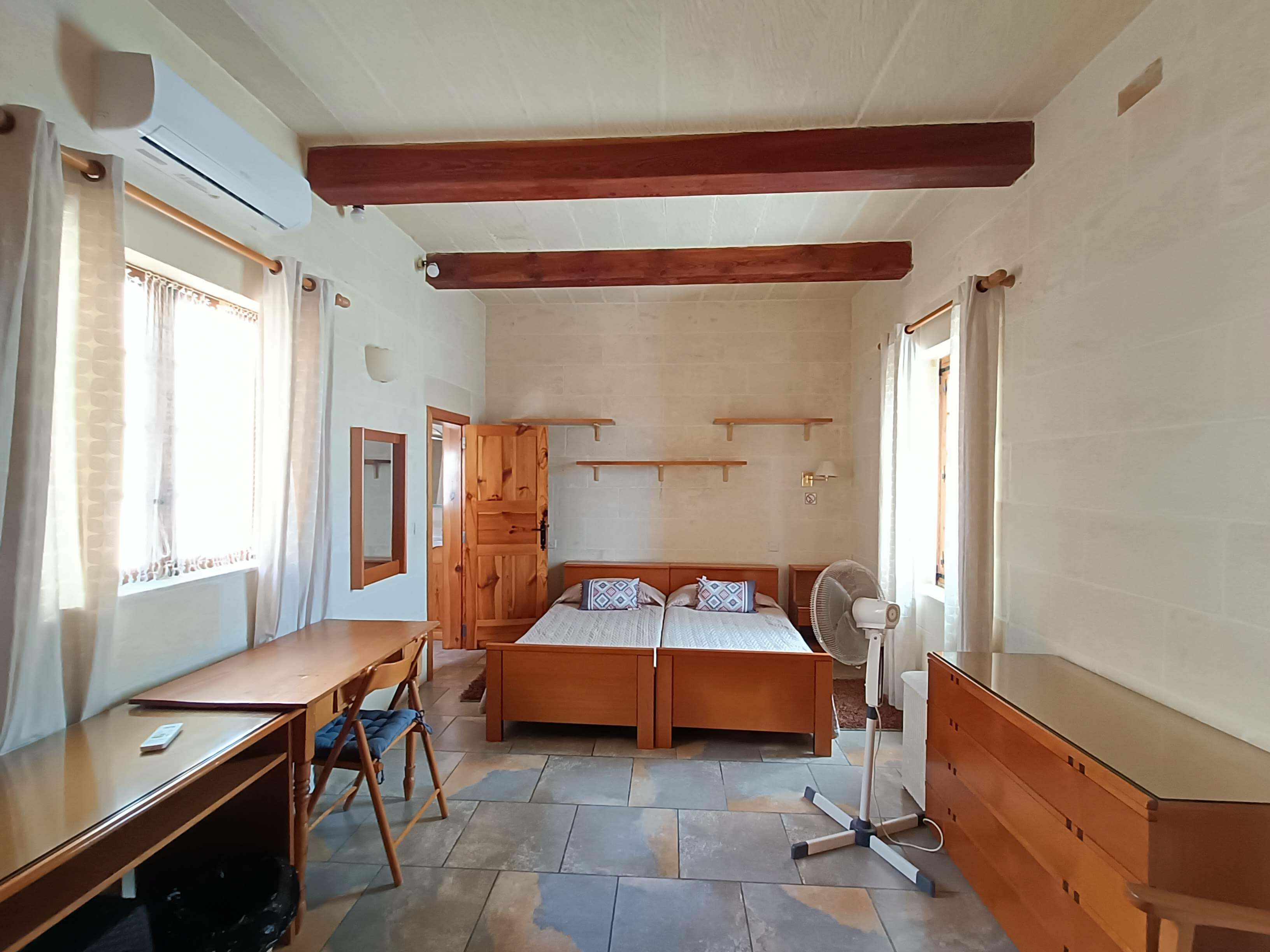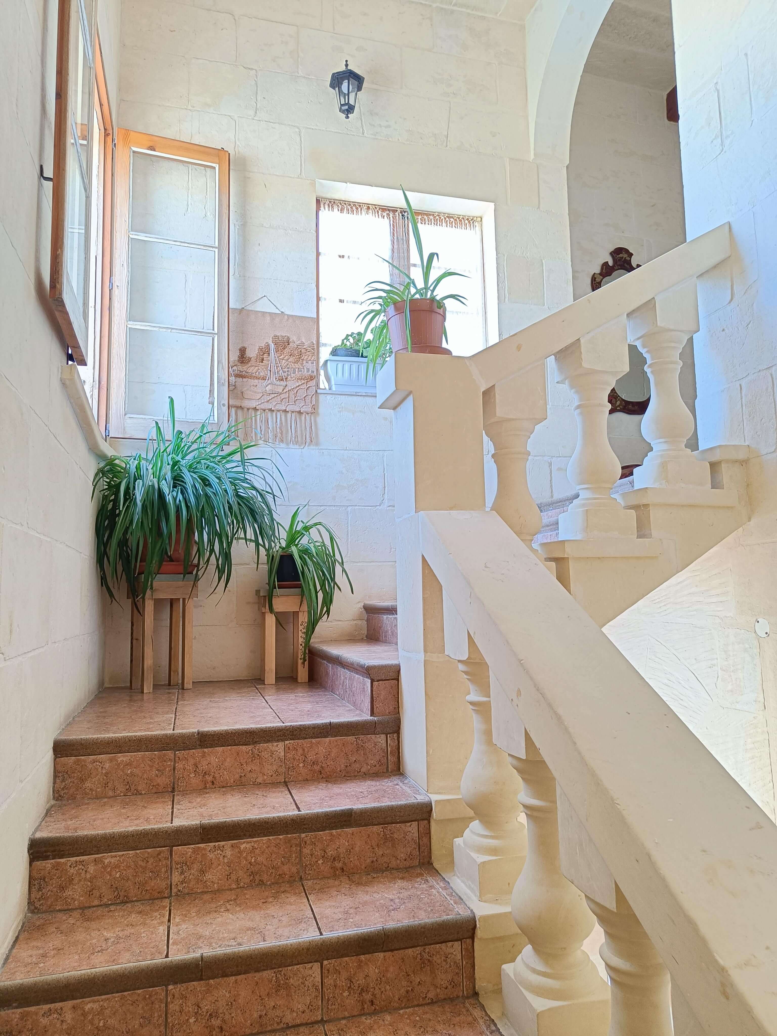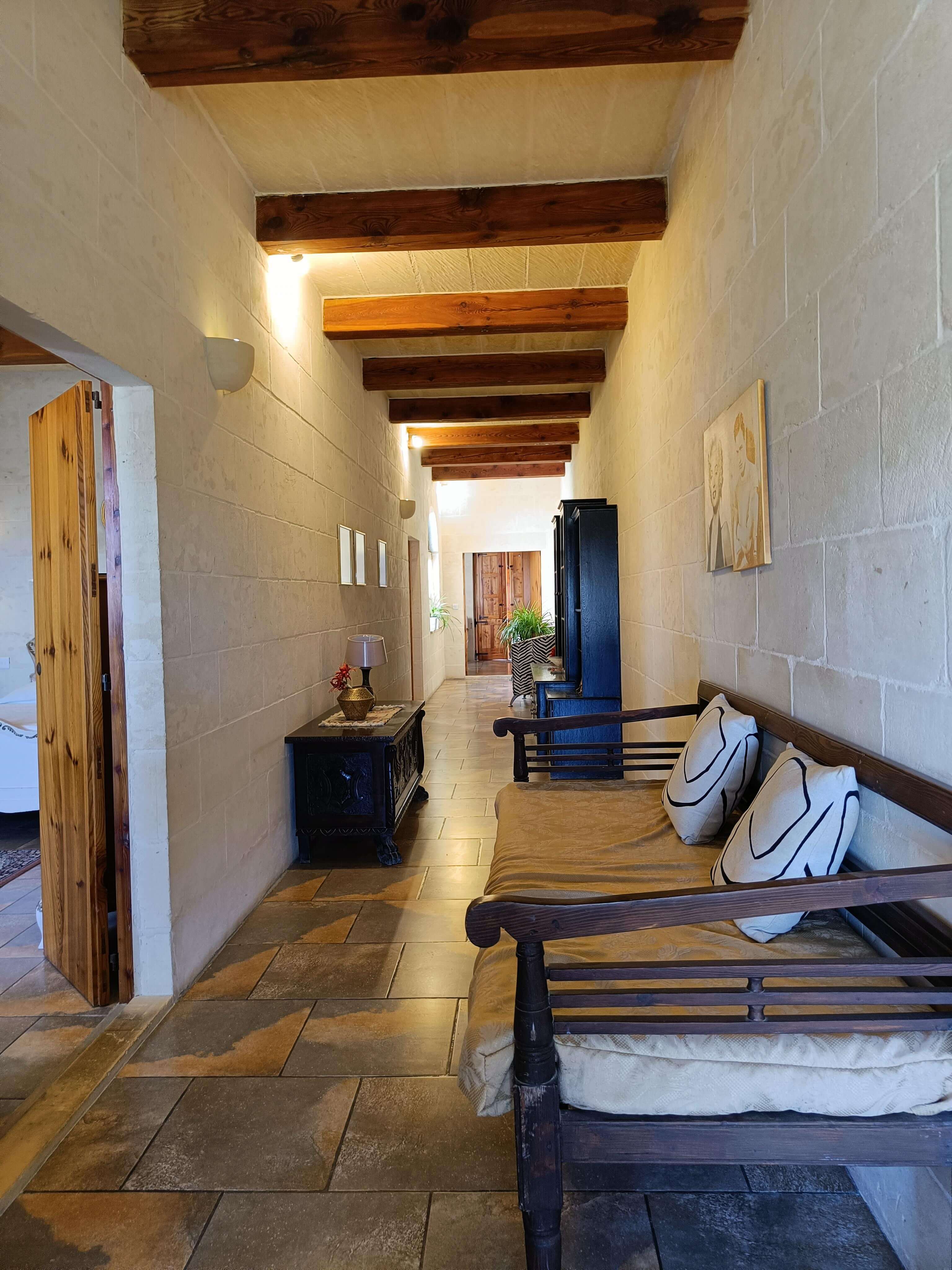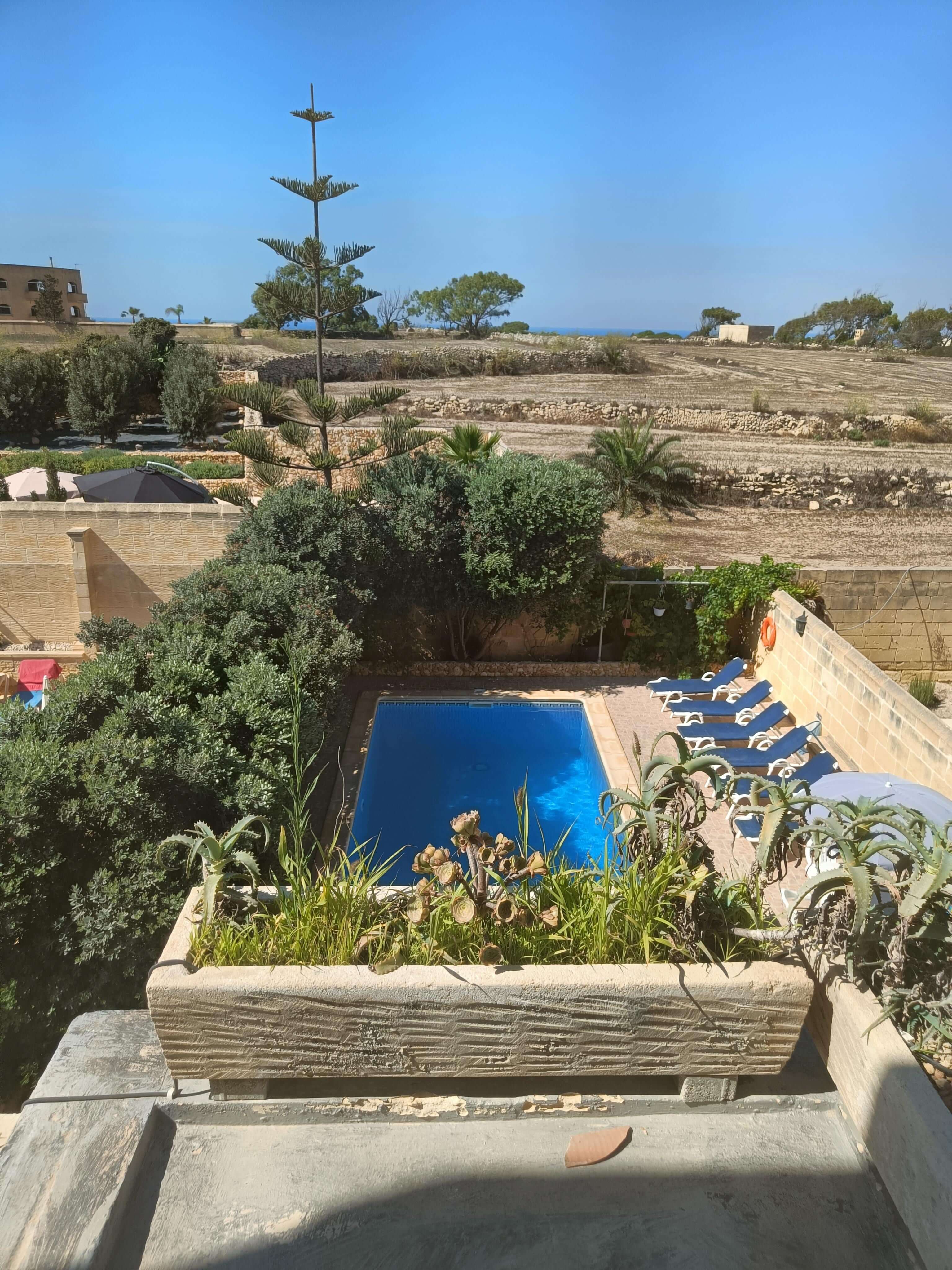 On the second floor one finds 3 double bedrooms all with en-suite shower and W.C. In the main bedroom there is a door leading to a balcony overlooking the pool with country and sea views while the other double bedrooms have a terrace overlooking country views.