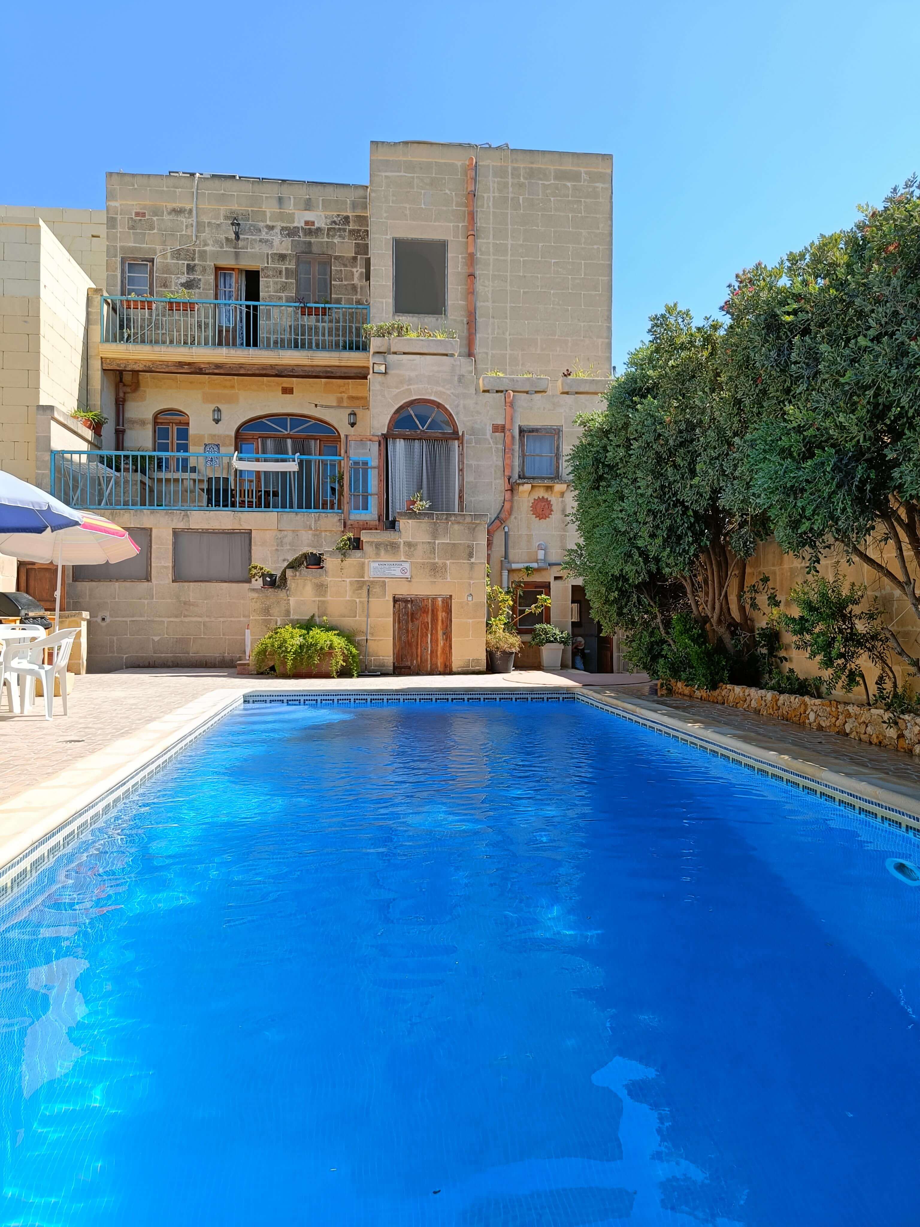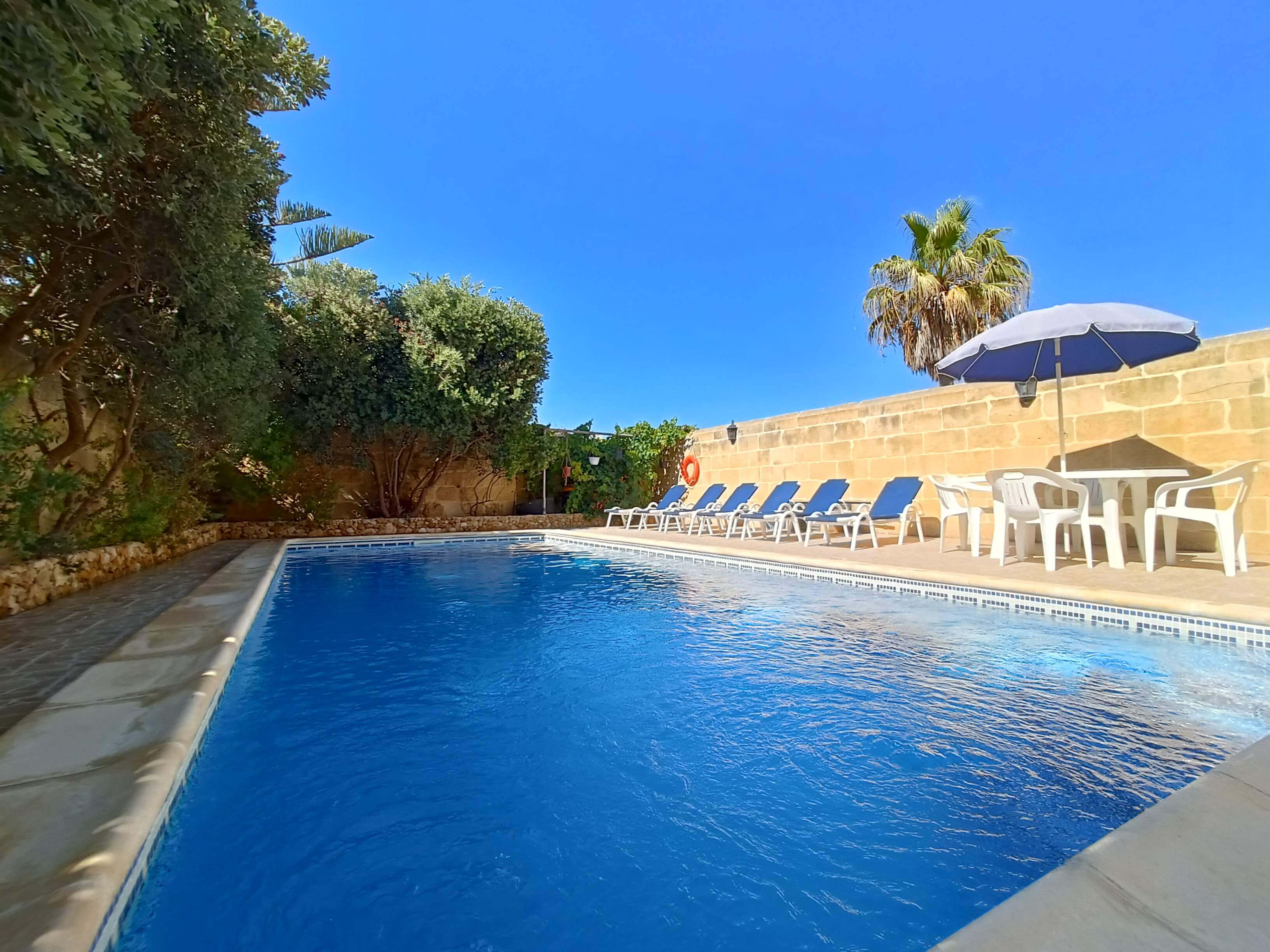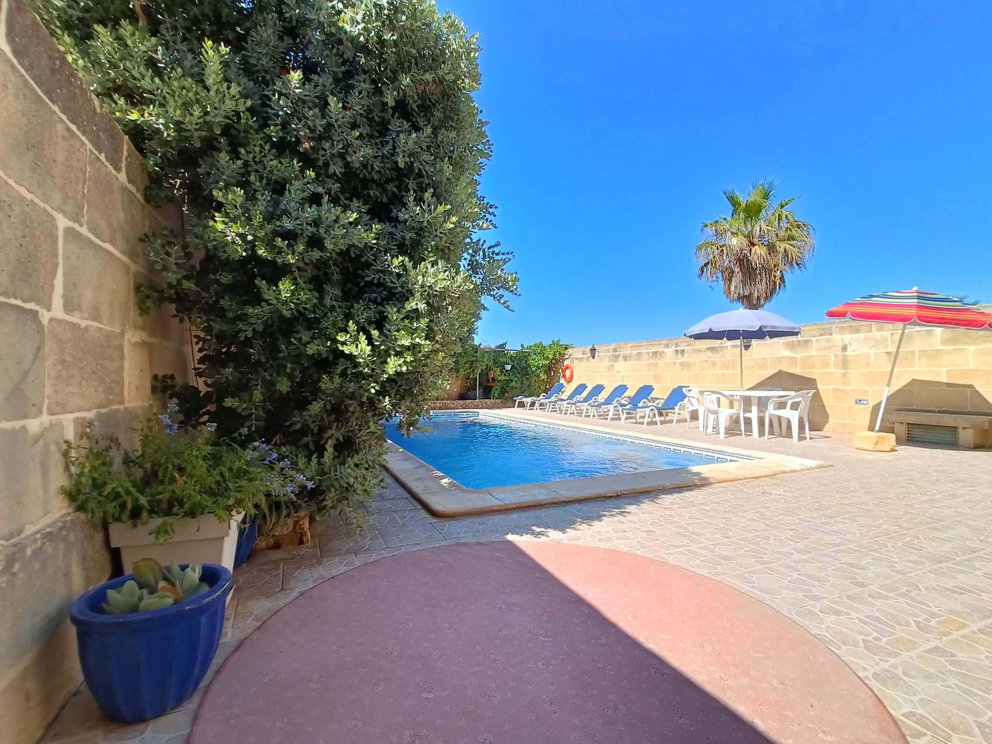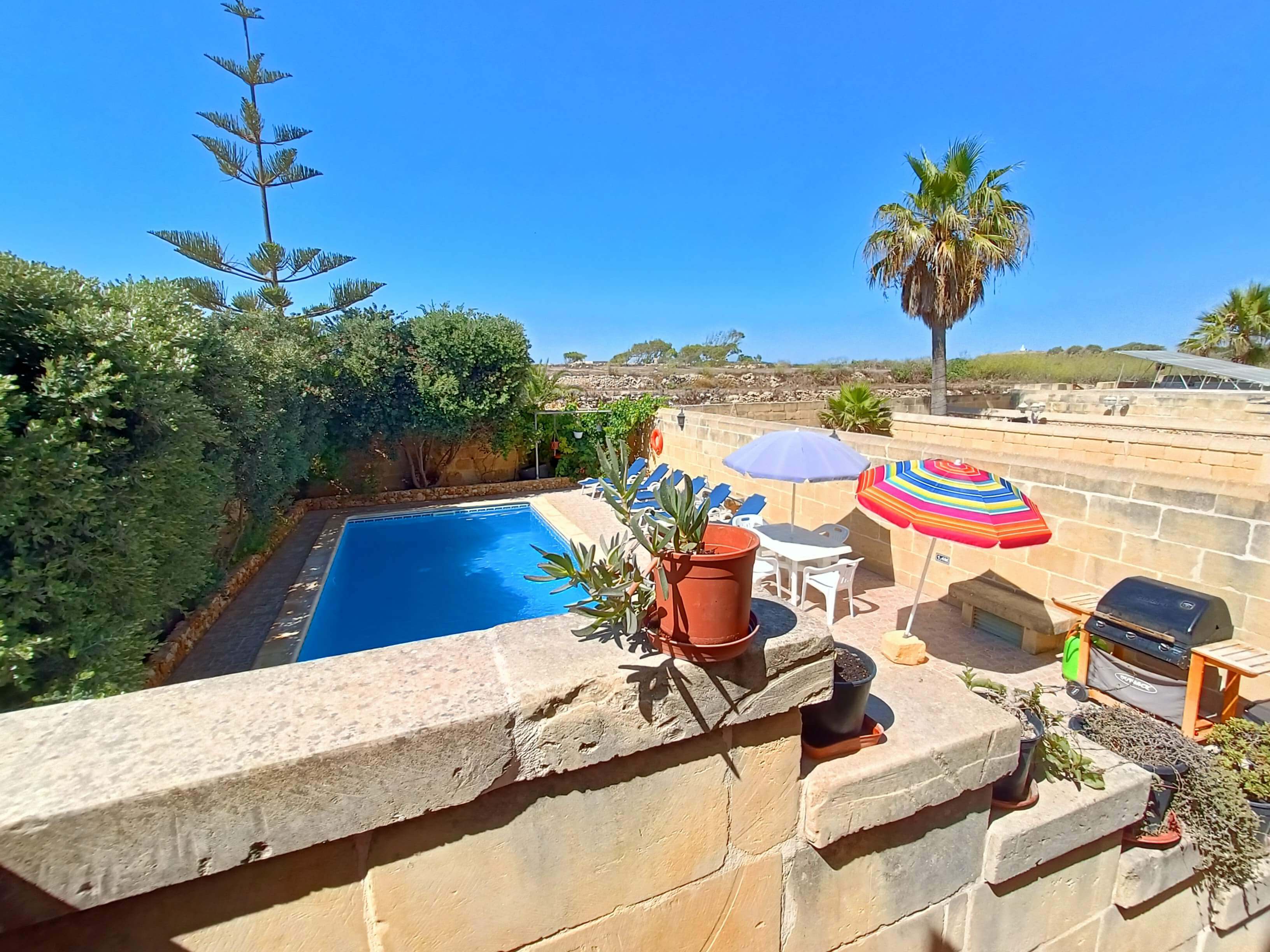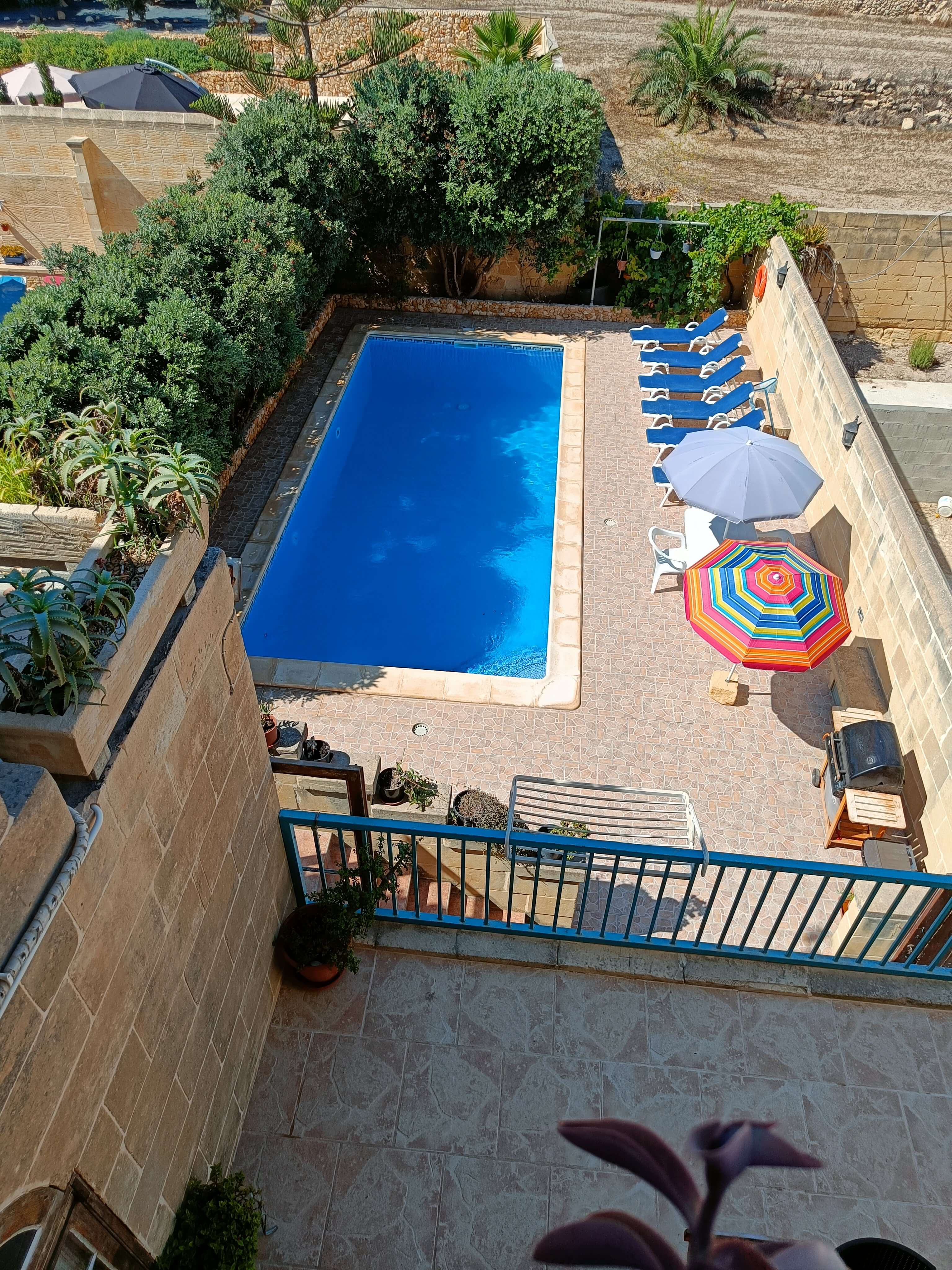 At ground floor level one finds a large pool area with barbeque facilities, deck chairs and outdoor dining furniture. There is also a shower room equipped with WC & washbasin.
